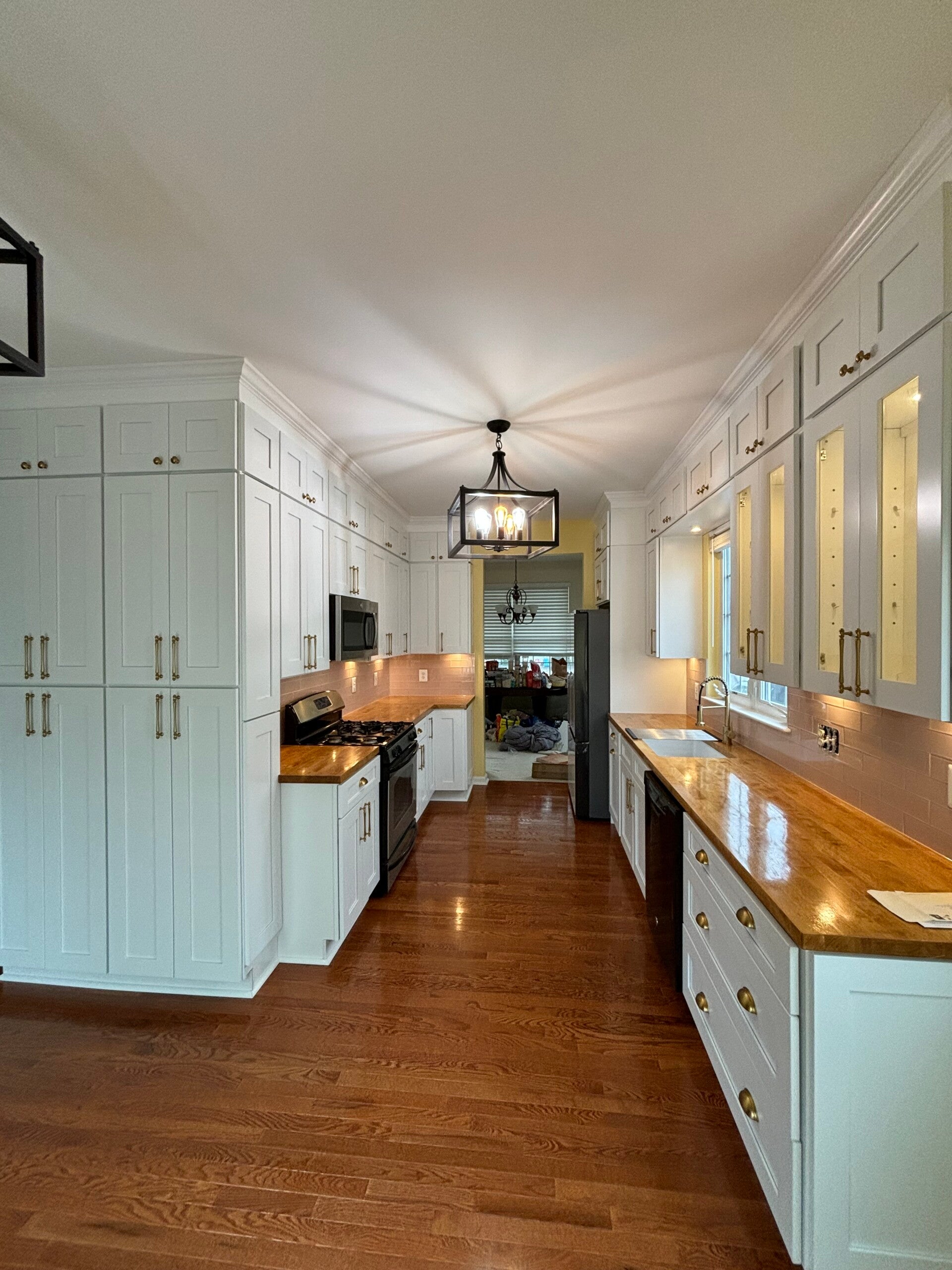 Tenemos las opciones de trabajos incluyendo materiales o de solo mano de obra, este trabajo solo mano de obra osila alrededor de $10,000 y $11,000 incluyendo instalación de gabinetes electricidad cerámica plomeria instalación y acabado de wood butcher block y instalación de appliances, todo con profesionalismo
